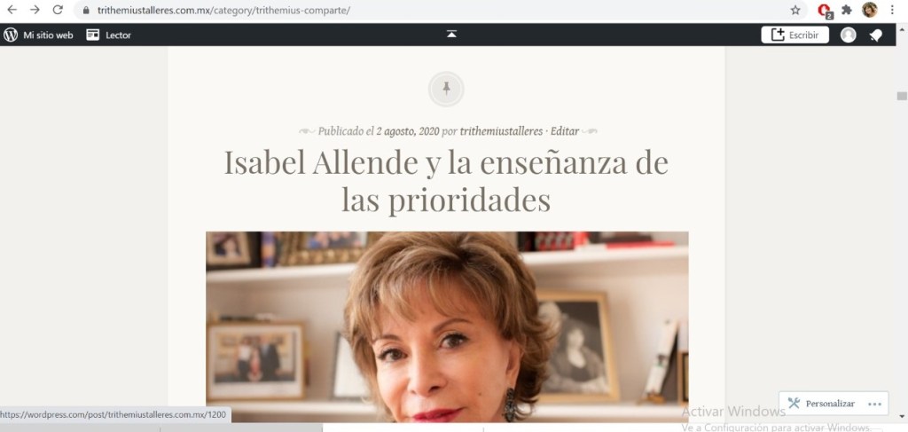 El 2 de agosto de 2020 publiqué un artículo en el WordPress de la comunidad Trithemius, acerca de la escritora chilena Isabel Allende.