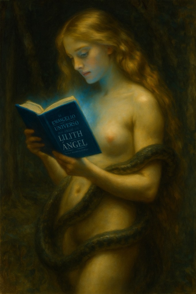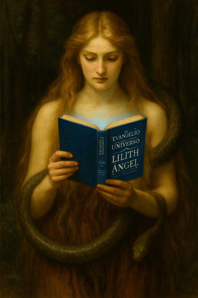 Escena del libro cuando Lilith y el Ángel leen el Evangelio del Universo