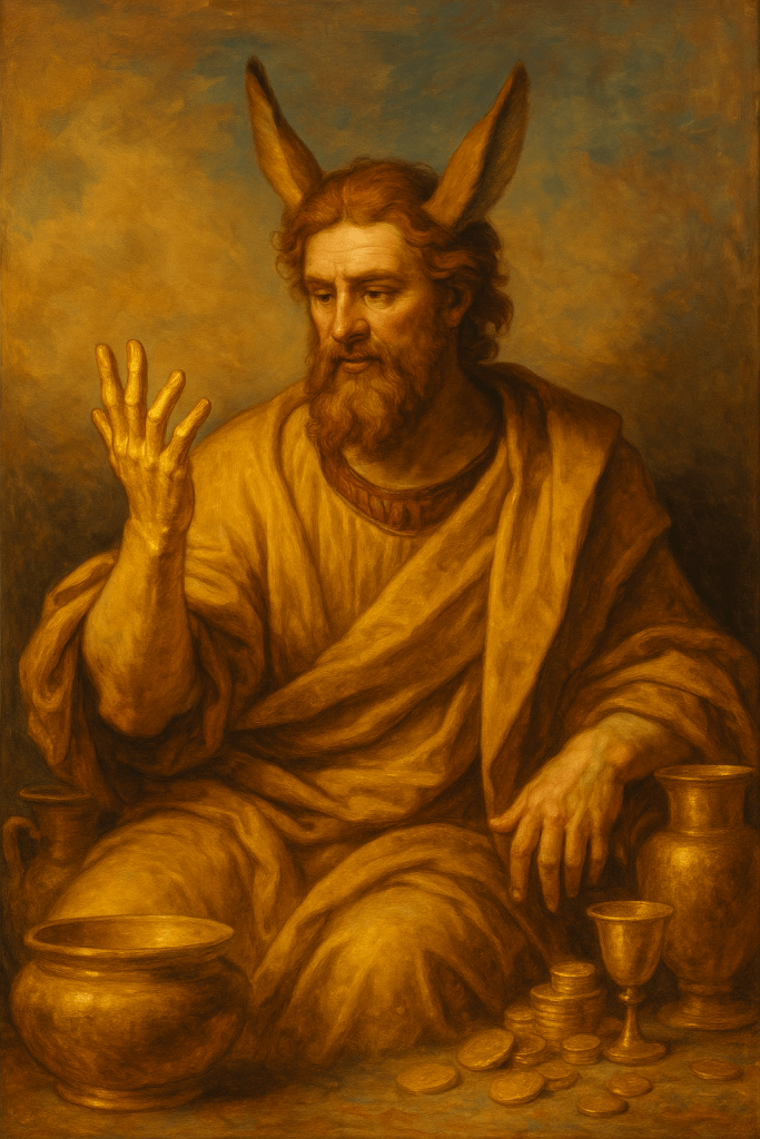 El mito se originó en Frigia (actual Turquía) en un período (siglo VIII a.C.) de expansión comercial y la introducción de la moneda, un momento en que la relación humana con la riqueza estaba siendo redefinida 2. El oro, históricamente, ha tenido un simbolismo dual: por un lado, representa la divinidad, la inmortalidad y la perfección (como en el antiguo Egipto); por otro, la corrupción, la codicia y la ruina moral (como en la historia del becerro de oro) 3. El mito de Midas explora magistralmente esta segunda faceta.