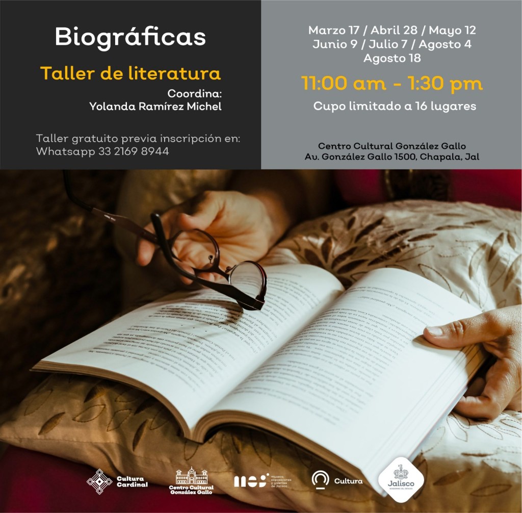 Convocamos a la comunidad de la Ribera de Chapala y zonas aledañas a participar en el taller literario Biográficas, que será impartido por la escritora Yolanda Ramírez Michel PhD. en Ciencias de la Educación, poeta, ensayista y editora.