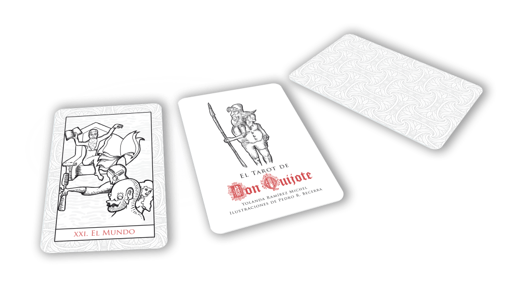 El Tarot de don Quijote es un proyecto que vincula la sabiduría de ambos libros. el Quijote y el Tarot. El Tarot es un libro de imágenes, y don Quijote un libro de símbolos. La primera edición, publicada por la editorial Salto Mortal (2016), contiene: El libro teórico, el oráculo y su mazo de cartas.
